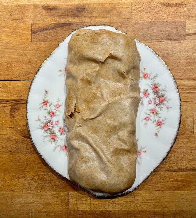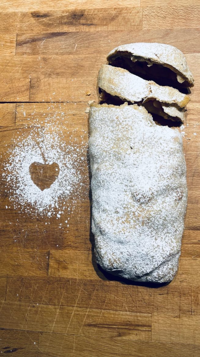 con ripieno di mele e confettura di albicocche - vegan strudel