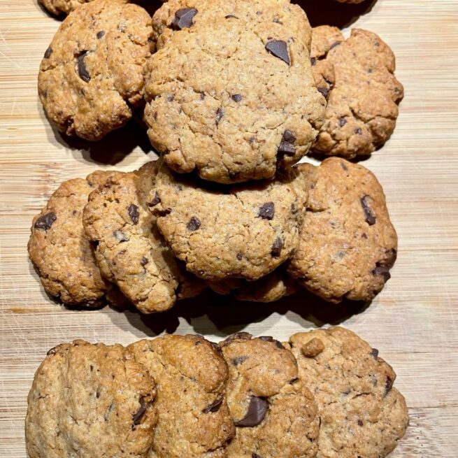 biscotti con burro di arachidi e pezzi di cioccolato - vegani